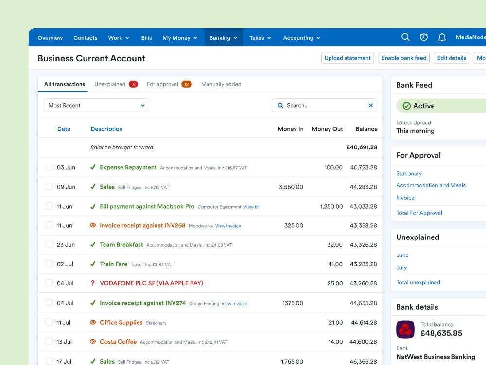Seamless syncing with bank feeds
